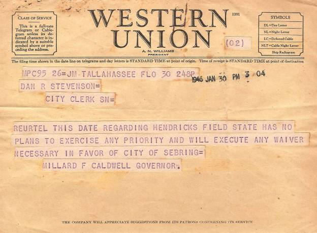 report that an interim permit for occupancy of Hendricks Field for civilian