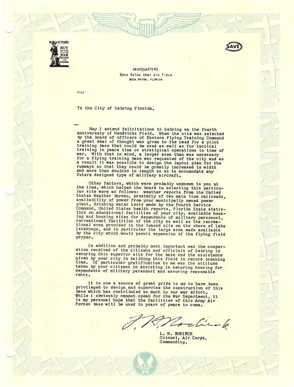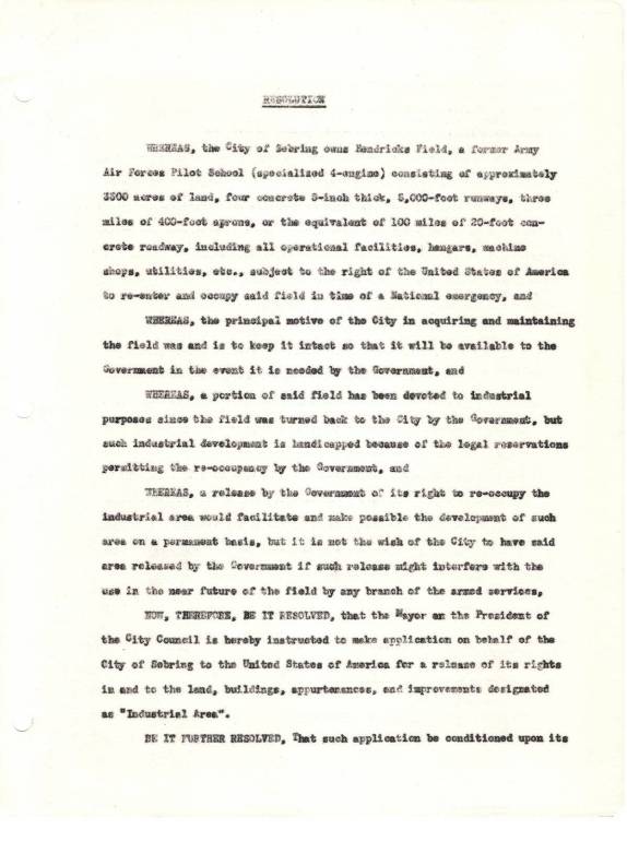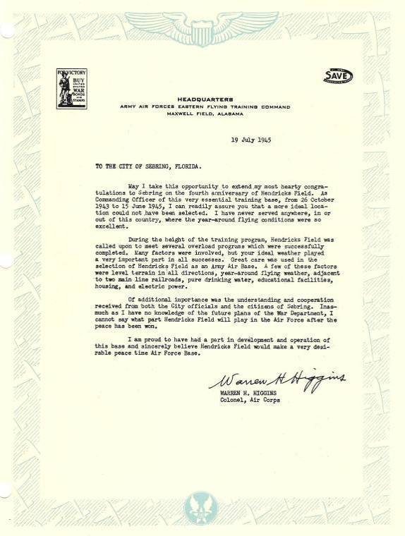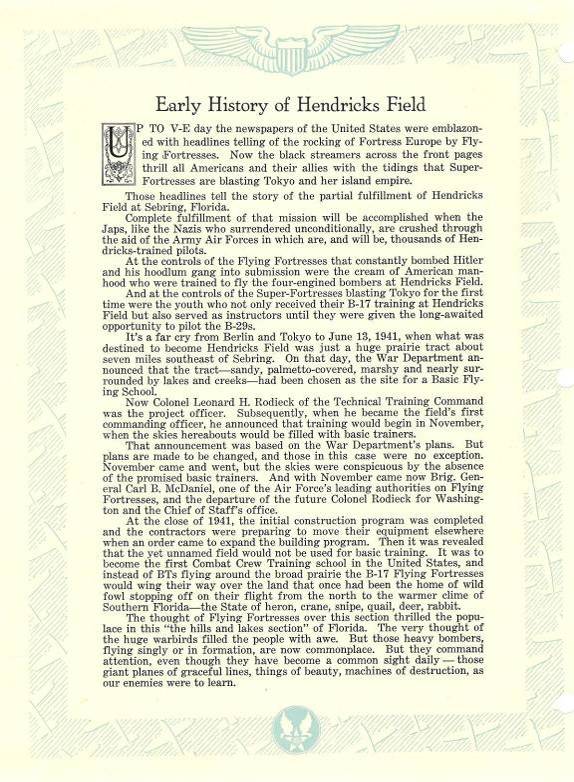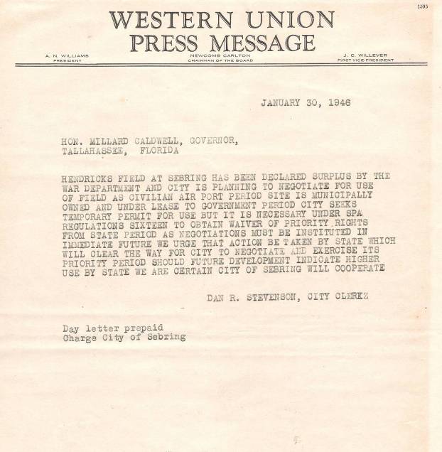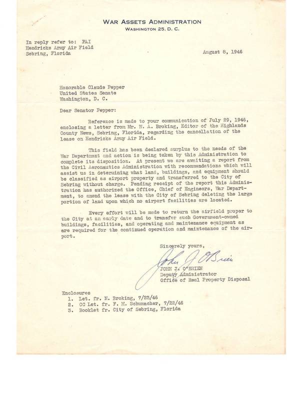 maintenance of Hendricks Field as a civilian and commercial airport is a